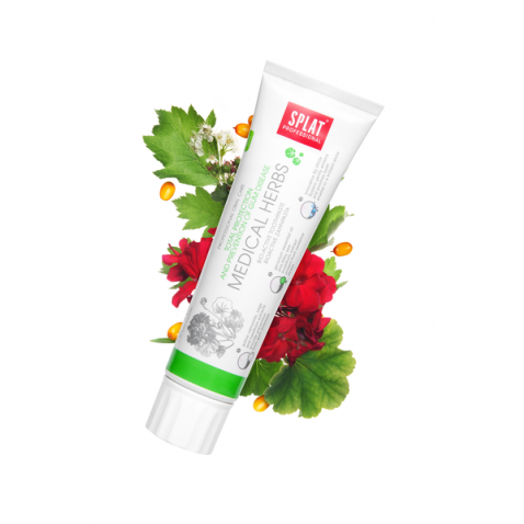Hydrogenated Starch Hydrolysate, Hydrated Silica, Aqua, PEG-8, Sodium Coco-Sulfate, Aroma, Xanthan Gum, Calcium Lactate, Sodium Monofluorophosphate, PVP, Sodium Methylparaben, Sodium Saccharin, Propylene Glycol, Hippophae Rhamnoides Fruit Extract, Crataegus Monogyna Fruit Extract, Chamomilla Recutita Flower Extract, Salvia Officinalis  Extract, Papain, Pelargonium Graveolens Stem Leaf Oil, CI 42090, CI 19140, Citric Acid, Sodium Benzoate, Potassium Sorbate, Limonene. Fluoride content – 0,1 % (1000 ppm).